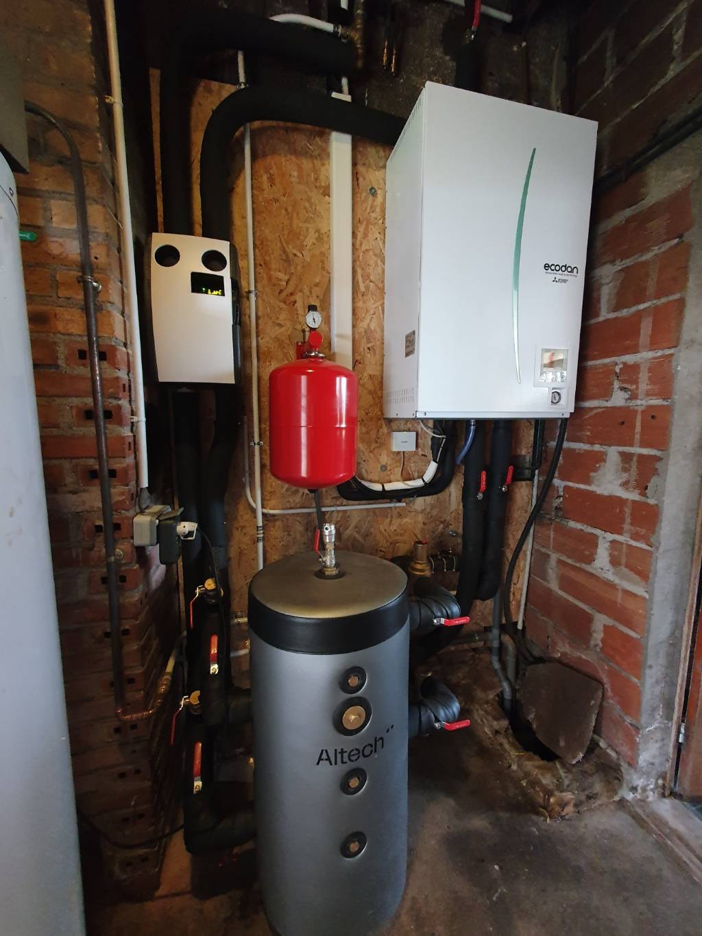 Dans cette jolie propriété, nous avons installé une pompe à chaleur AIR/EAU de la marque Mitsubishi, modèle zubadan Haute température (60°c)